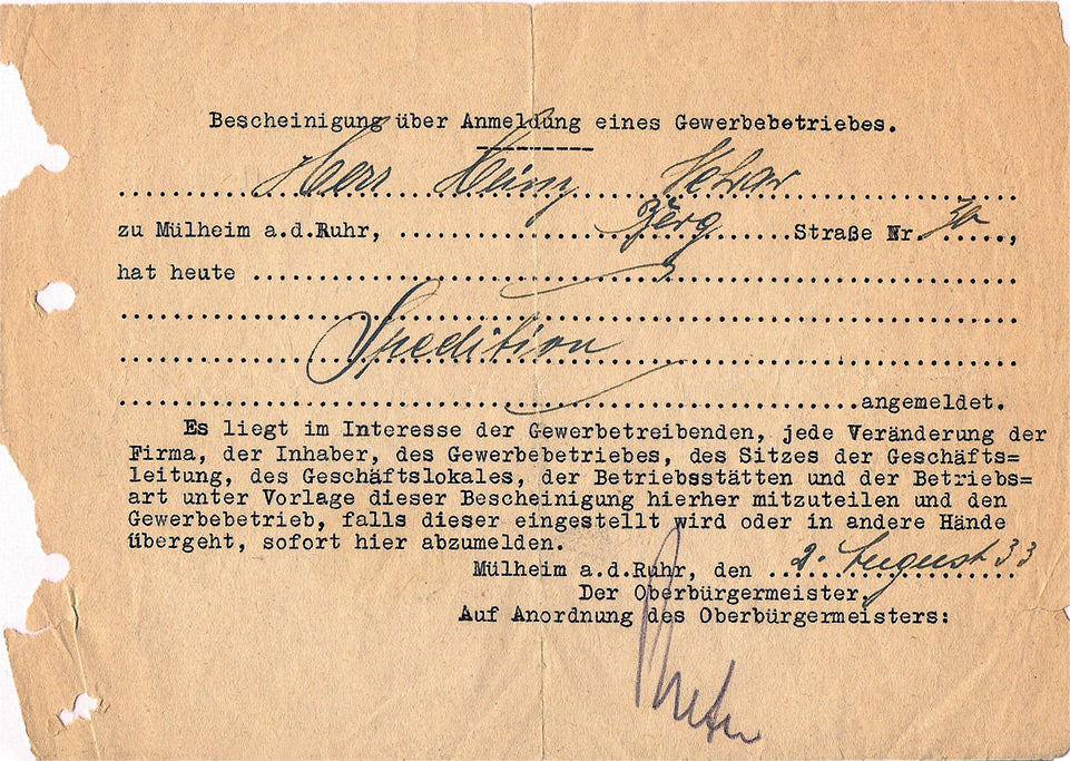 Im Jahr 1933, inmitten der industriellen Dynamik der Stadt Mülheim an der Ruhr, gründet der Unternehmer Heinrich Vehar das Unternehmen Vehar Spedition.
