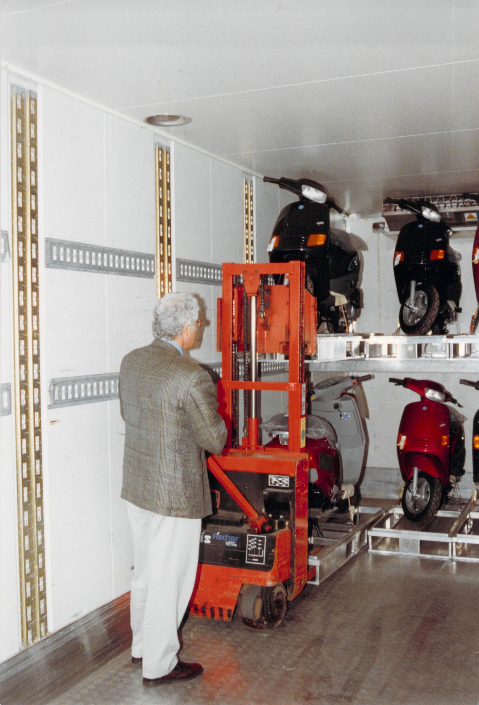 Zur Optimierung der Fahrzeugauslastung wird im Transportsegment Industrie die Doppelstocktechnik eingeführt - hier der Geschäftsführer Günter Vehar bei der symbolischen ersten Verladung.
