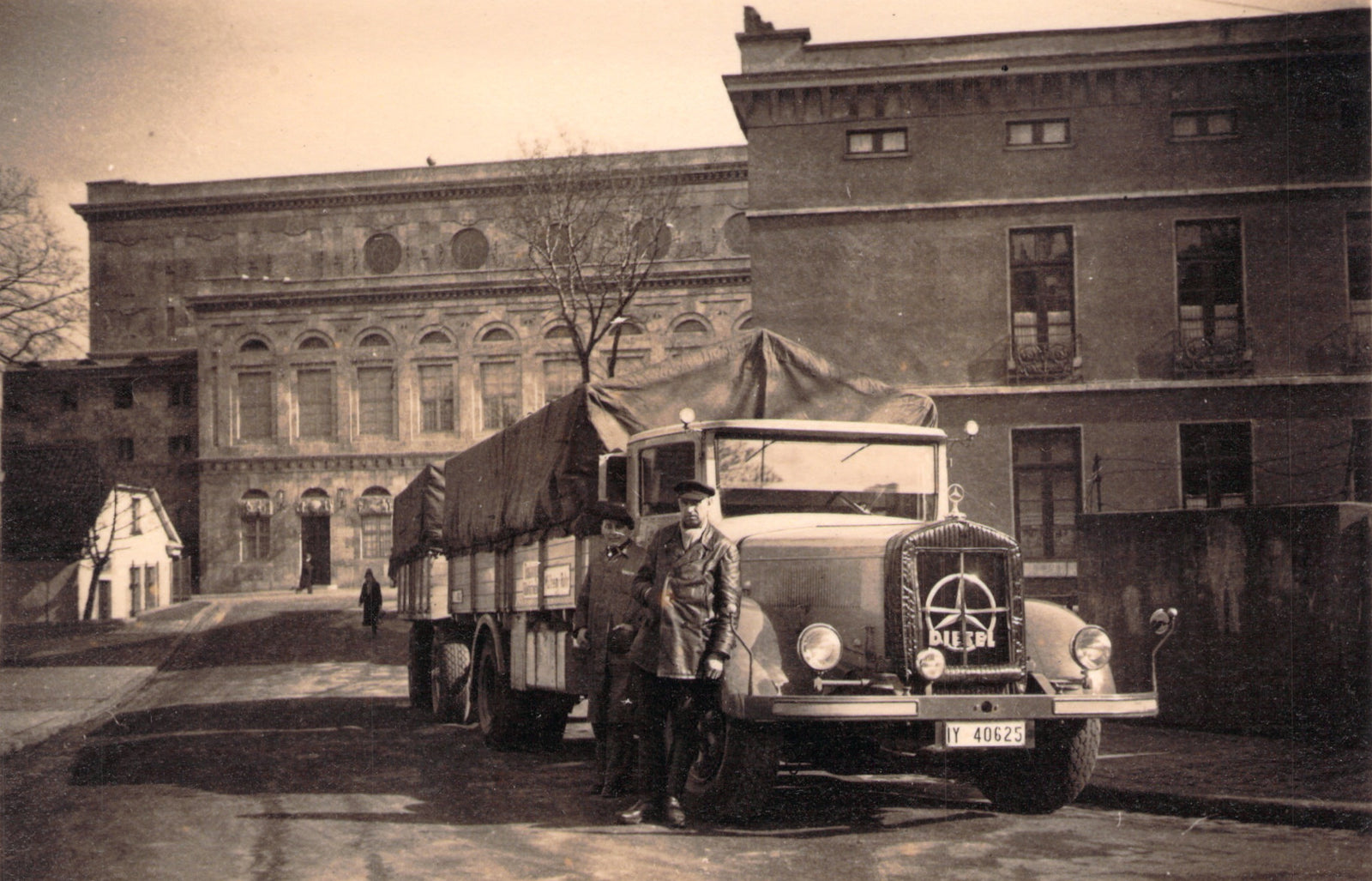 1947 beginnt der Wiederaufbau des firmeneigenen Fuhrparks. Mit dem Erwerb eines Studebaker LKW zeigt die Firmenführung unermüdlichen Unternehmergeist nach den Enteignungsmaßnahmen während der Kriegszeit.